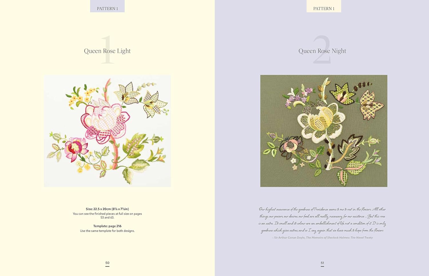 4 paired 'light and night' embroideries: each pair uses one design but varies the colours of the threads, fabric colour and stitches used, to give two distinctly different results. Each project contains a complete thread and stitch list, which corresponds to detailed photography of the finished embroidery, to make it as accessible as possible.
